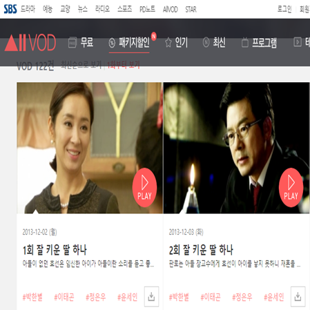 잘 키운 딸 하나는 SBS 공식 홈페이지에서 무료로 전 회차를 감상할 수 있습니다. 화질 변경이나 광고 제거는 유료결제를 이용해야 하지만 그런 것에 별로 신경을 쓰지 않는다면 무료로 보는 데에도 전혀 불편함이 없습니다. SBS 공홈에 접속하여 "잘 키운 딸 하나"를 검색하고 무료 다시보기 버튼을 누르면 1회 부터 2회 3회 4회 5회 6회 7회 8회 9회 10회 11회 12회 13회 14회 15회 16회 17회 18회 19회 20회 21회 22회 23회 24회 25회 26회 27회 28회 29회 30회 31회 32회 33회 34회 35회 36회 37회 38회 39회 40회 41회 42회 43회 44회 45회 46회 47회 48회 49회 50회 51회 52회 53회 54회 55회 56회 57회 58회 59회 60회 61회 62회 63회 64회 65회 66회 67회 68회 69회 70회 71회 72회 73회 74회 75회 76회 77회 78회 79회 80회 81회 82회 83회 84회 85회 86회 87회 88회 89회 90회 91회 92회 93회 94회 95회 96회 97회 98회 99회 100회 101회 102회 103회 104회 105회 106회 107회 108회 109회 110회 111회 112회 113회 114회 115회 116회 117회 118회 119회 120회 121회 122회 (마지막회)까지 전부 시청할 수 있습니다. 짧은 광고를 3-4개 정도 시청한 후 정상적으로 재생되고 다음 회차까지 자동으로 이어볼 수 있는 서비스를 지원하고 있습니다.