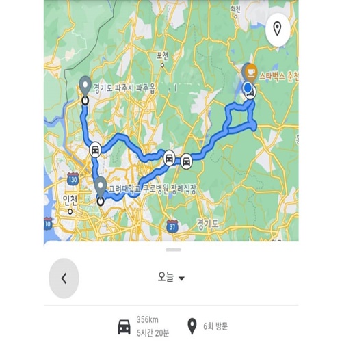 평소에 가지고 다니던 핸드폰의 구글 계정으로 PC 구글 지도에 로그인을 합니다. 그 후, 구글 지도의 왼쪽 상단 메뉴 버튼을 눌러 내 타임라인에 들어갑니다. 그 후, 연도와 월, 일을 선택하여 원하는 날짜를 설정하면 여행 또는 이벤트가 있었던 날의 경로가 지도에 표출됩니다.