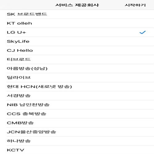 실행하면 서비스 제공 회사(LG U+, KT CJ Hello)를 선택할 수 있는 창이 뜨게 됩니다. 사용하려는 서비스 제공자를 클릭합니다.