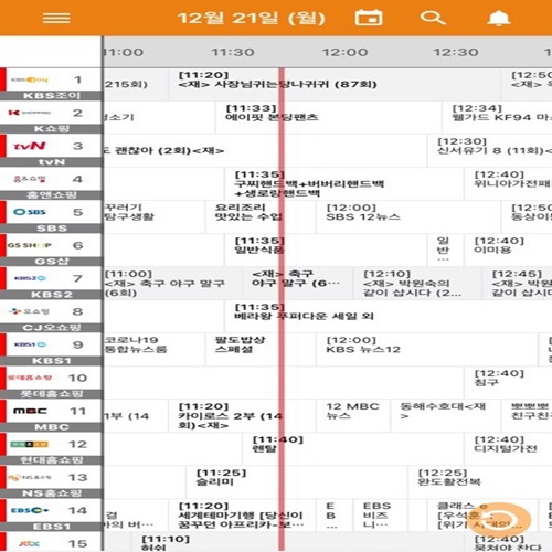 활성화된 시간에 TV 기기에서 방영하고 있는 방송들과 그 채널이 화면에 뜨고 방송 진행 수준을 알려주는 표시 또한 보실 수 있습니다. 서비스 제공 회사와 호환 가능한 채널 번호도 탭 왼쪽에 표시되니 채널을 헷갈릴 걱정은 안 하셔도 될 것 같습니다.